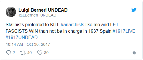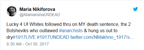 Μέσα σε είκοσι χρόνια, οι μπολσεβίκοι είχαν εκτελέσει ή φυλακίσει τα περισσότερα άτομα που συμμετείχαν στην επανάσταση. Σήμερα, όπως επικρατεί το hashtag #1917 στο twitter σχετικά με την Επανάσταση στη Ρωσία, πρέπει να θυμόμαστε και τους νεκρούς του 1917, τους αναρχικούς και αναρχικές που αγωνίστηκαν για να δείξουν στην ανθρωπότητα πως τα κρατικίστικα μονοπάτια προς την κοινωνική αλλαγή δεν θα μας οδηγήσουν ποτέ στην κοινωνική απελευθέρωση. Κάποιοι από αυτούς, όπως η Fanya  και ο Aron Baron , δολοφονήθηκαν εν ψυχρώ από τους απολυταρχικούς κομμουνιστές στη Σοβιετική Ένωση. Άλλοι κατάφεραν να επιβιώσουν, προδομένοι από τους υποτιθέμενους συντρόφους τους, παρακολουθώντας τα ολοκληρωτικά επιτεύγματα του μπολσεβίκικου πραξικοπήματος.