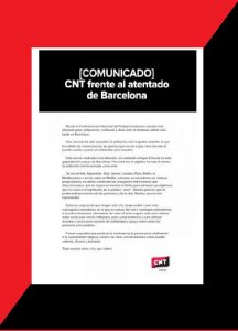 - Ανακοίνωση της CNT Ισπανίας, σχετικά με την επίθεση στην Βαρκελώνη: