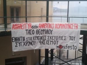 ΕΝΑΝΤΙΑ ΣΤΙΣ ΚΡΑΤΙΚΕΣ ΣΚΕΥΩΡΙΕΣ ΤΟΥ ΣΥΓΧΡΟΝΟΥ ΦΑΣΙΣΜΟΥ Continue reading “ΑΛΛΗΛΕΓΓΥΗ στον αναρχικό κομμουνιστή Τάσο Θεοφίλου, ενάντια στις κρατικές σκευωρίες του σύγχρονου φασισμού.”